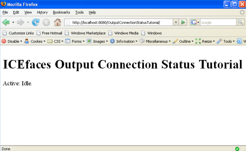 The outputConnectionStatus component provides an ideal mechanism to provide continuous real-time feedback to users of the status of their ICEfaces application. It is particularly important to inform users when the application is busy sending and receiving data in response to a user-initiated action to manage their expectations with respect to application readiness for additional user input. Generally, the outputConnectionStatus component should be located in a consistent location throughout an ICEfaces application.