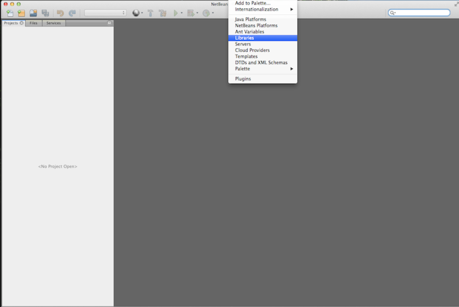 Start up Netbeans, then choose Tools and then Libraries:-