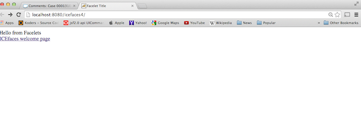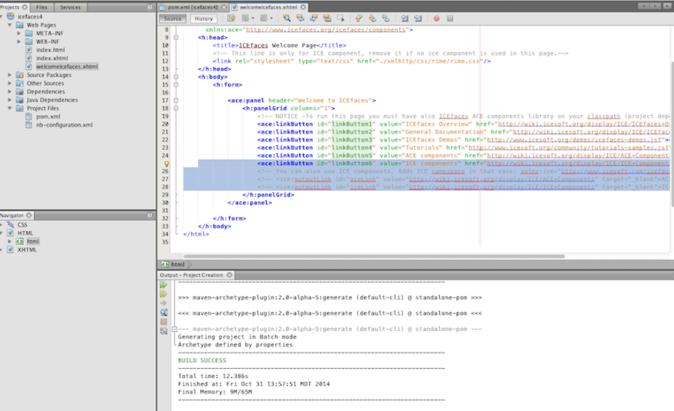Step 5. Remove any reference to compat components (ice namespace). Open welcomeIcefaces.xhtml and remove the highlighted (some are commented out) lines as the following image:-