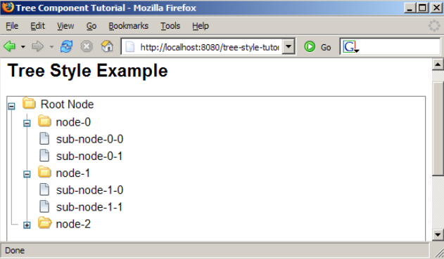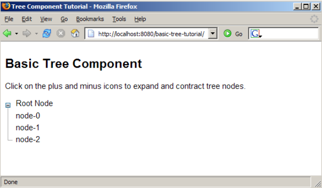 Creating a basic tree component is a pretty standard process comprising of two parts. The first part consists of building a backing bean which will contain the DefaultTreeModel. The second part is to add the tree component to your ICEfaces application. Here is a picture of the tree we will create: